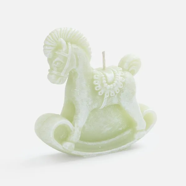 Очаровательная свеча в виде милой игрушечной светло-зеленой лошадки с легкостью перенесет в мир светлого волшебства и беззаботного детства. Она выполнена в наивном ретростиле и станет прекрасным дополнением к основному новогоднему подарку, добавив ему очарования и непринужденности.