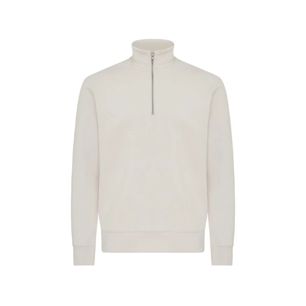 Белый свитшот на молнии выполнен из 100% хлопка, который на 30% состоит из переработанного и на 70% из органического. Воротник-стойка, втачные длинные рукава и резинка по манжетам и низу.