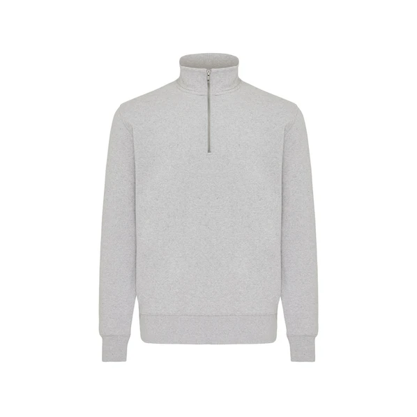 Серый свитшот на молнии выполнен из 100% хлопка, который на 30% состоит из переработанного и на 70% из органического. Воротник-стойка, втачные длинные рукава и резинка по манжетам и низу.