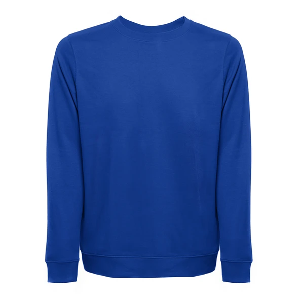 Синий унисекс свитшот из футера без начеса полуприлегающего силуэта.