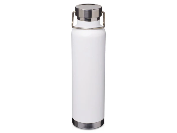 Экологичная белая бутылка из переработанной нержавеющей стали с двойными стенками и медной вакуумной изоляцией, сертифицированная по стандарту RCS.