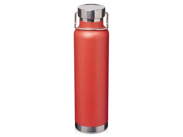 Экологичная красная бутылка из переработанной нержавеющей стали с двойными стенками и медной вакуумной изоляцией, сертифицированная по стандарту RCS.