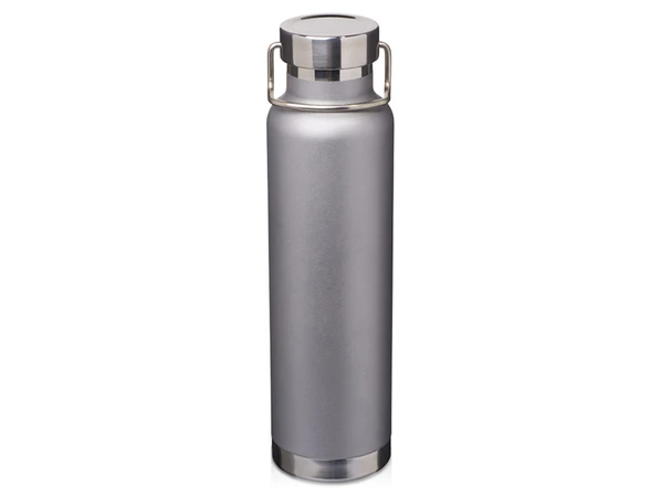 Экологичная серебристая бутылка из переработанной нержавеющей стали с двойными стенками и медной вакуумной изоляцией, сертифицированная по стандарту RCS.