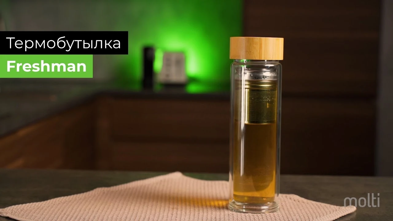 Материал: бутылка - боросиликатное стекло; чехол - неопрен; ситечко - нержавеющая сталь; крышка - бамбук, пластик