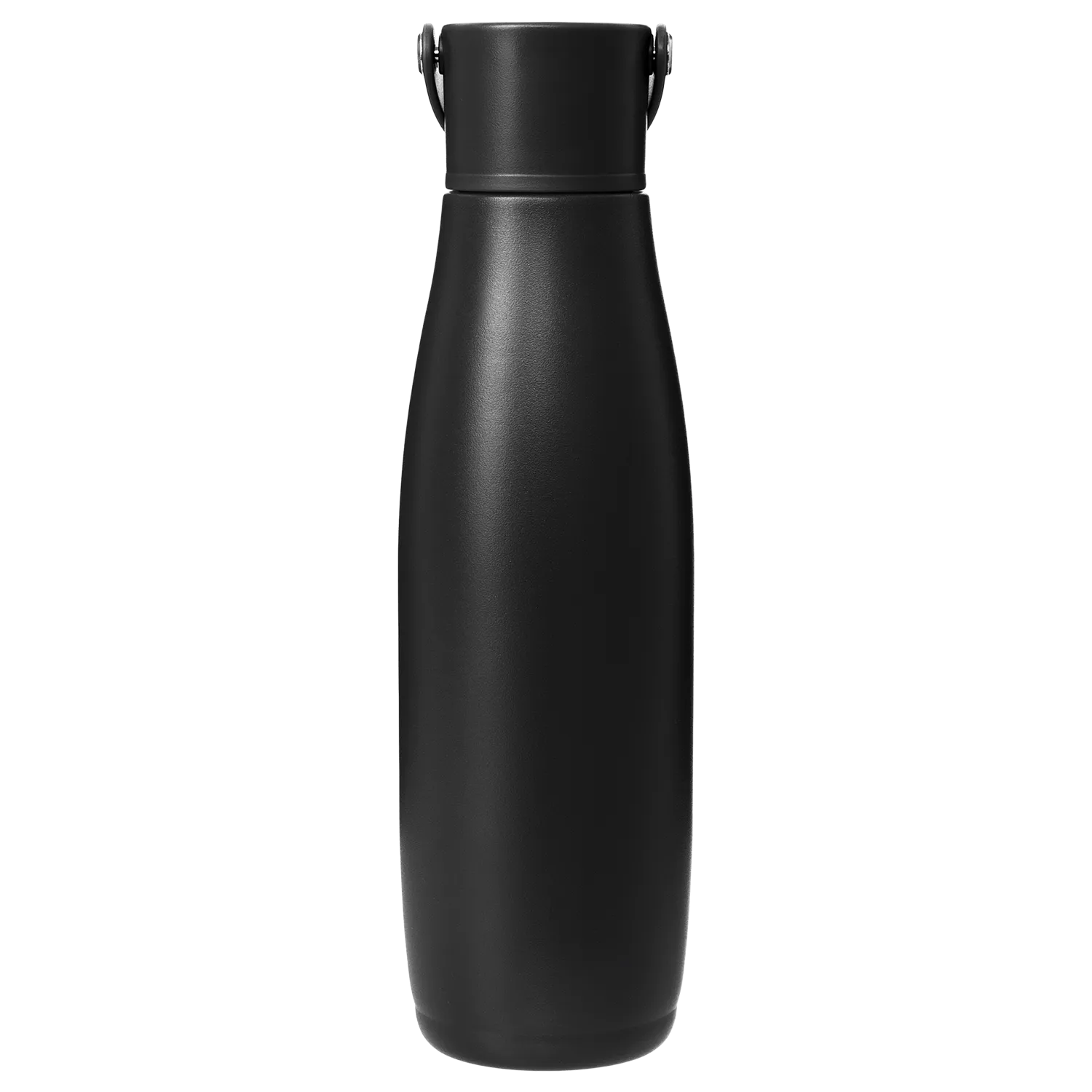 Черная термобутылка Bosca объемом 480 мл — современный дизайн и практичность в каждом элементе. Обтекаемая форма удобно ложится в руку, а крышка с надежной конструкцией и удобной ручкой делает переноску максимально комфортной.