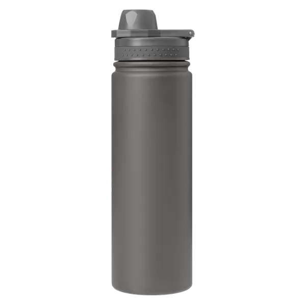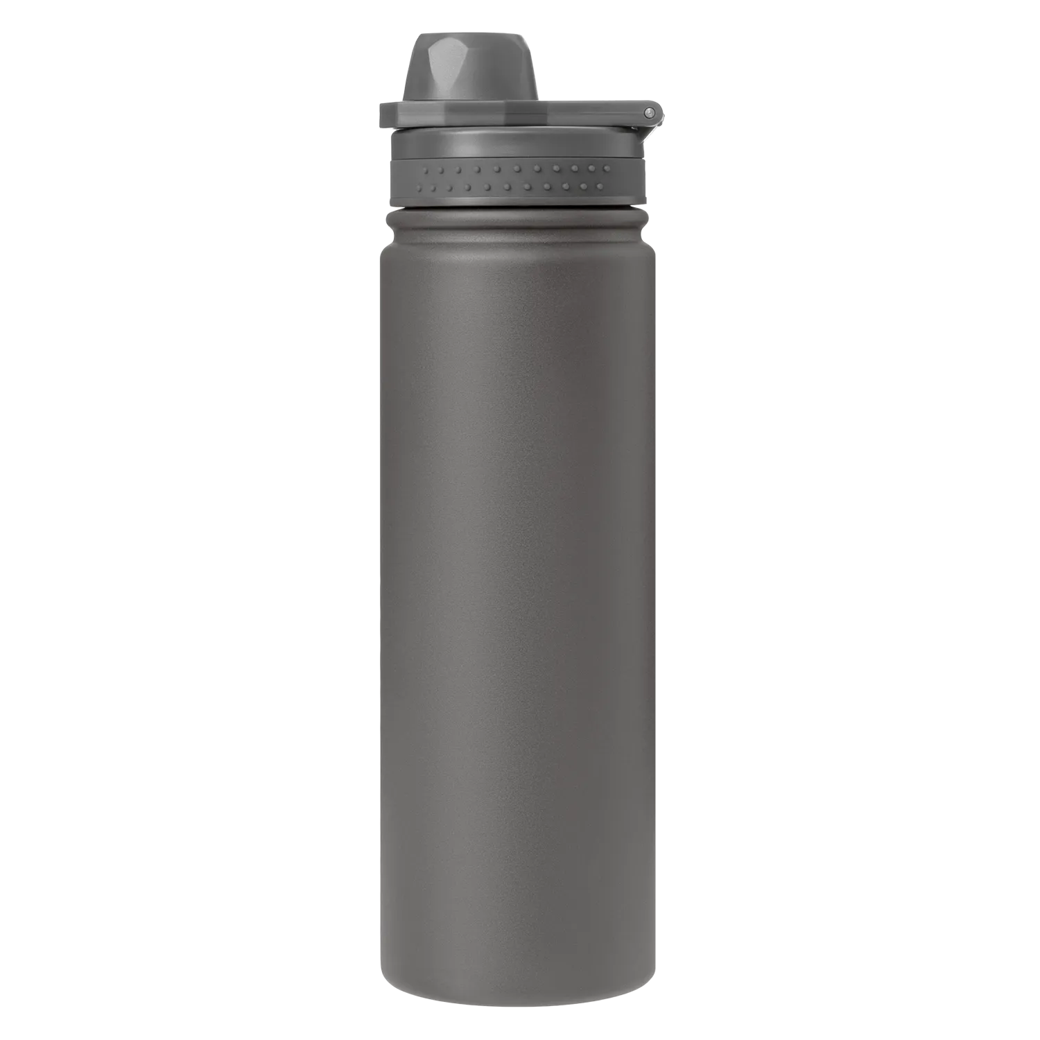 Серая бутылка оснащена съемной трубочкой. Удобная ручка на крышке облегчает переноску и позволяет прикрепить термобутылку к рюкзаку или сумке.