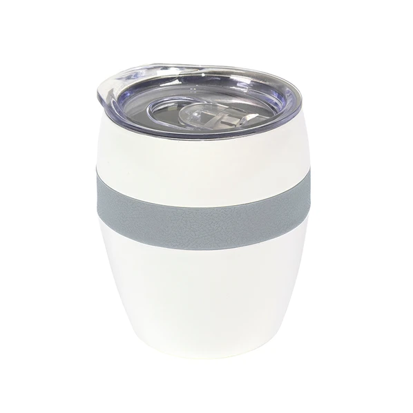 Бело-серая термокружка Line с двойными стальными стенками сохранит напиток горячим до 3х часов. Объем изделия составляет 300 мл. Благодаря форме удачно лежит в руке, и за счет резинового браслета не скользит.