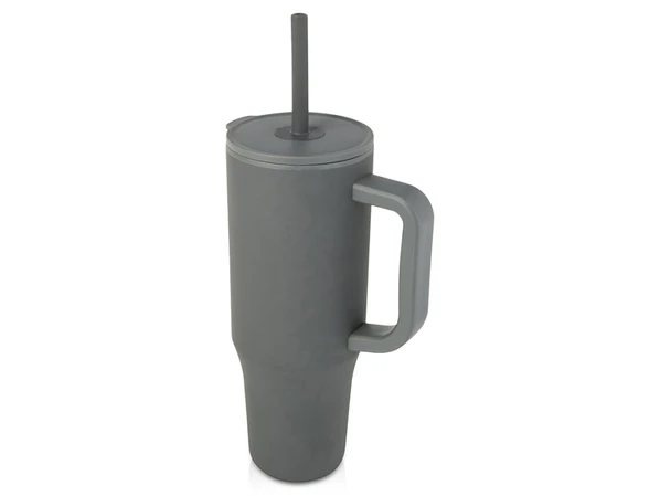 Экологичная серая термокружка с прочной внешней стенкой из сертифицированной RCS переработанной нержавеющей стали и внутренней стенкой из пластика. В комплект входит встроенная соломинка из пищевого силикона и герметичная крышка с защитой от брызг для комфортного питья.