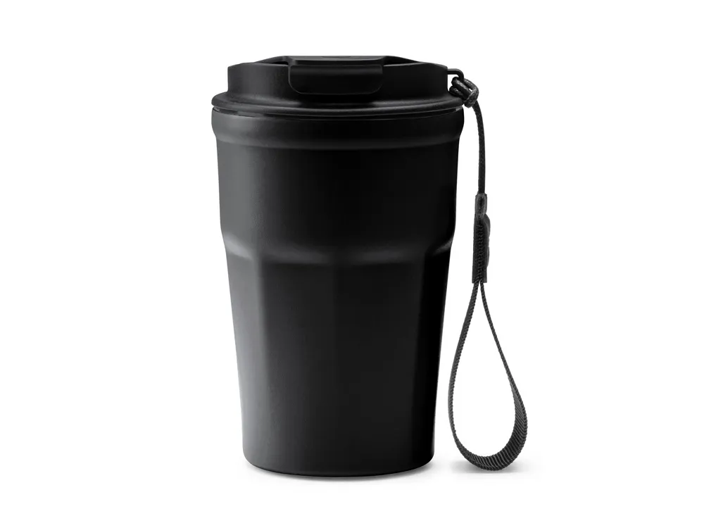 Черная термокружка Keury из нержавеющей стали с внутренней керамической отделкой. Вакуумная изоляция, герметичная.