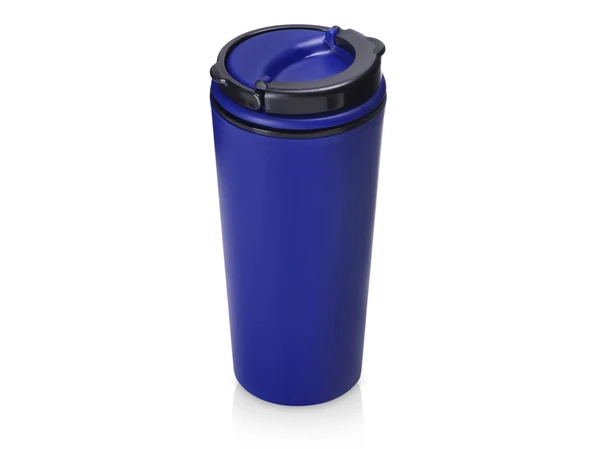 Многоразовый синий стакан-тамблер для горячих и холодных напитков. Двойные стенки сохраняют напиток теплым и не дают напитку обжечь руки. Конструкция крышки тамблера оснащена надежным клапаном, который предотвращает проливание жидкости.