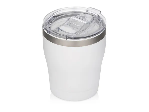 Вакуумная белая термокружка от Waterline, внутренняя колба которой имеет керамическое покрытие. Двойные стенки с вакуумной медной изоляцией помогают удерживать тепло, сохраняя температуру.