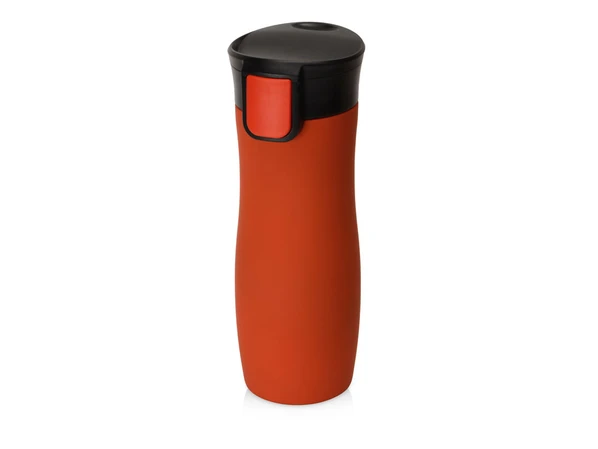 Красная термокружка Waterline Streamline. Модель эргономичной формы из качественной долговечной стали с покрытием soft-touch и герметичной крышкой. Крышка имеет специальную конструкцию, благодаря которой пользоваться термокружкой удобно даже одной рукой. Чтобы попить просто нажмите и удерживайте кнопку, если отпустить — крышка автоматически заблокируется.