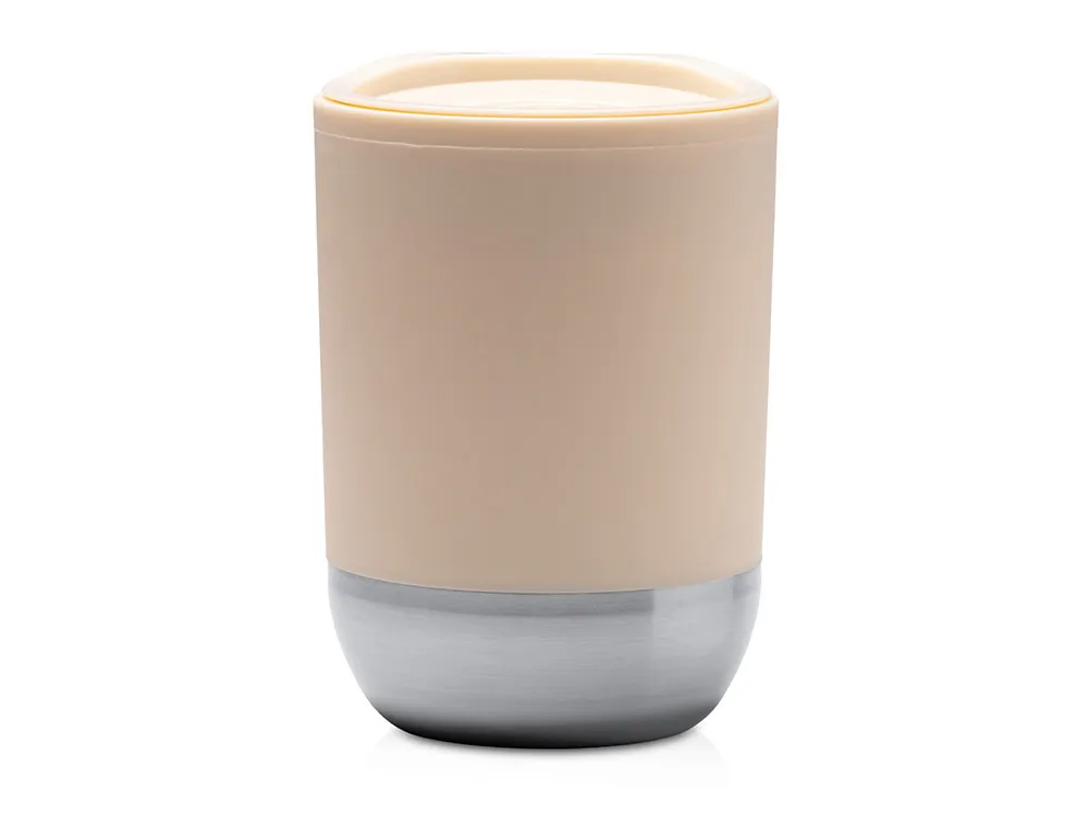 Термокружка с двойными стенками из переработанного полипропилена и дном из нержавеющей стали 304 бежевого цвета.