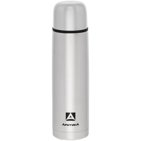 Классический серебристый термос для напитков с лаконичным дизайном.