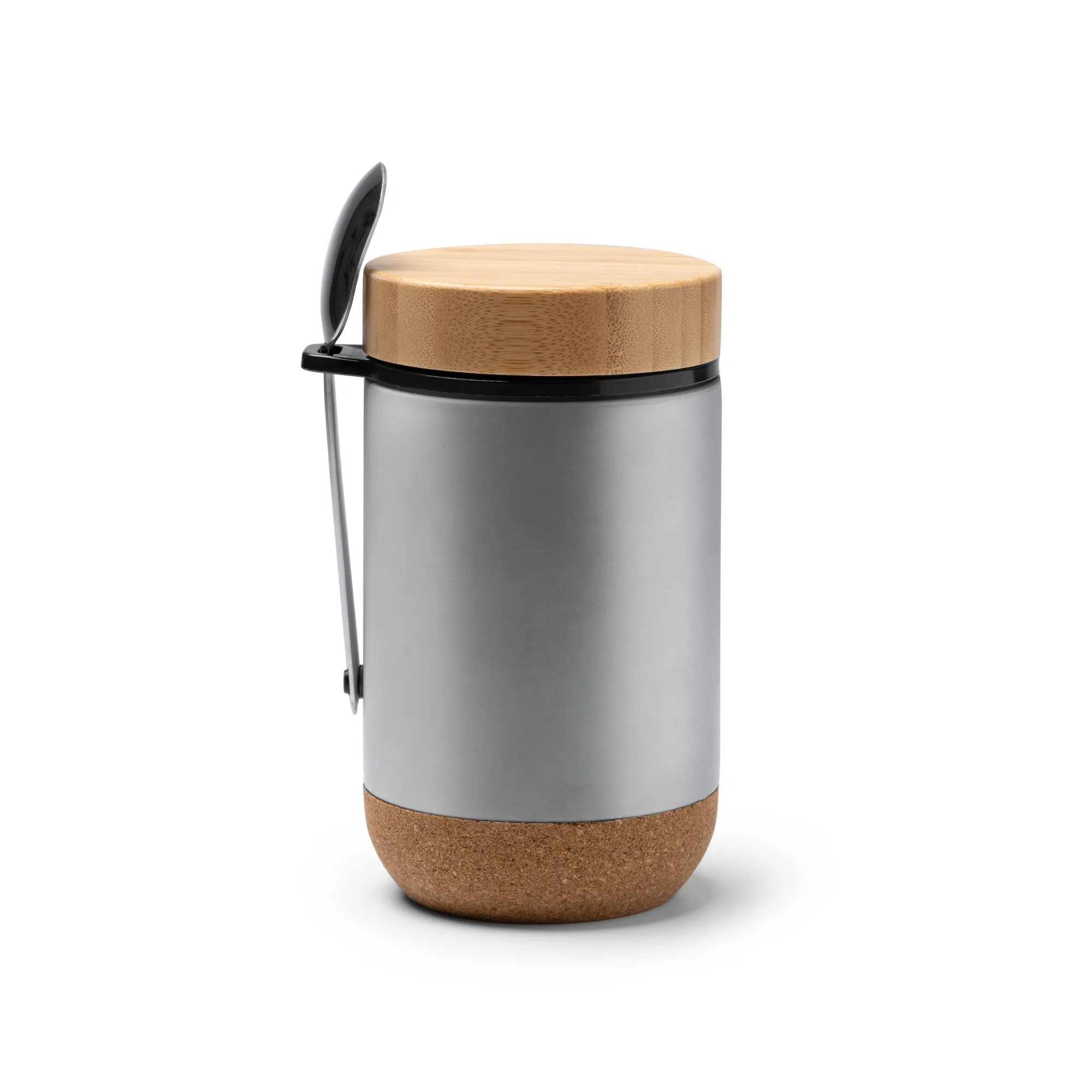 Серебристый термос из нержавеющей стали. Двойная стенка с медной изоляцией.