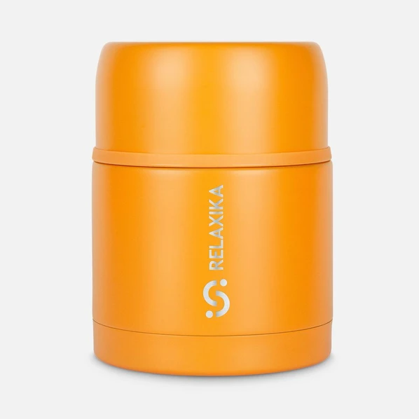 Классический желтый термос для еды Relaxika с высокими показателями удержания температуры. Для походов, путешествий, спорта и ежедневного использования.