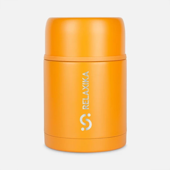 Классический желтый термос для еды Relaxika с высокими показателями удержания температуры для походов, путешествий, спорта и ежедневного использования.
