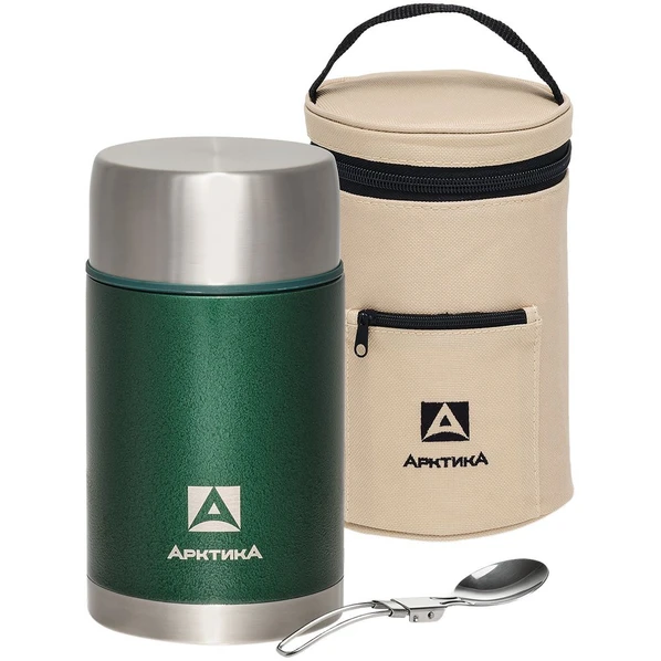 Готовый комплект для похода на природу: зеленый термос для еды с широким горлом и ударопрочным покрытием и легкая складная ложка в термочехле. Емкость 1000 мл.
