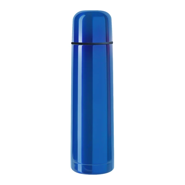 Вакуумный термос синего цвета, двойные стенки из нержавеющей стали.
