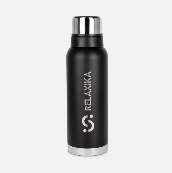 Классический черный термос Relaxika с высокими показателями удержания температуры напитка прекрасно подойдет для походов, путешествий, спорта и ежедневного использования. Набор стикеров в комплекте поможет добавить индивидуальности и поднять настроение.