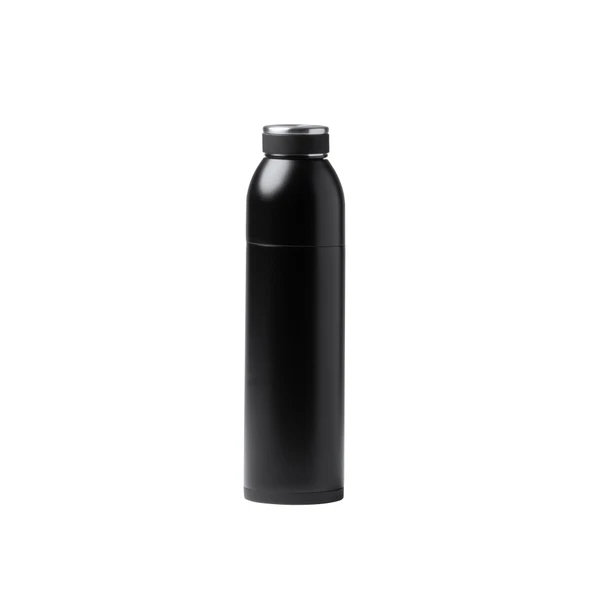 Черный термос из нержавеющей стали. Емкость бутылки: 650 мл, емкость чашки: 500 мл.