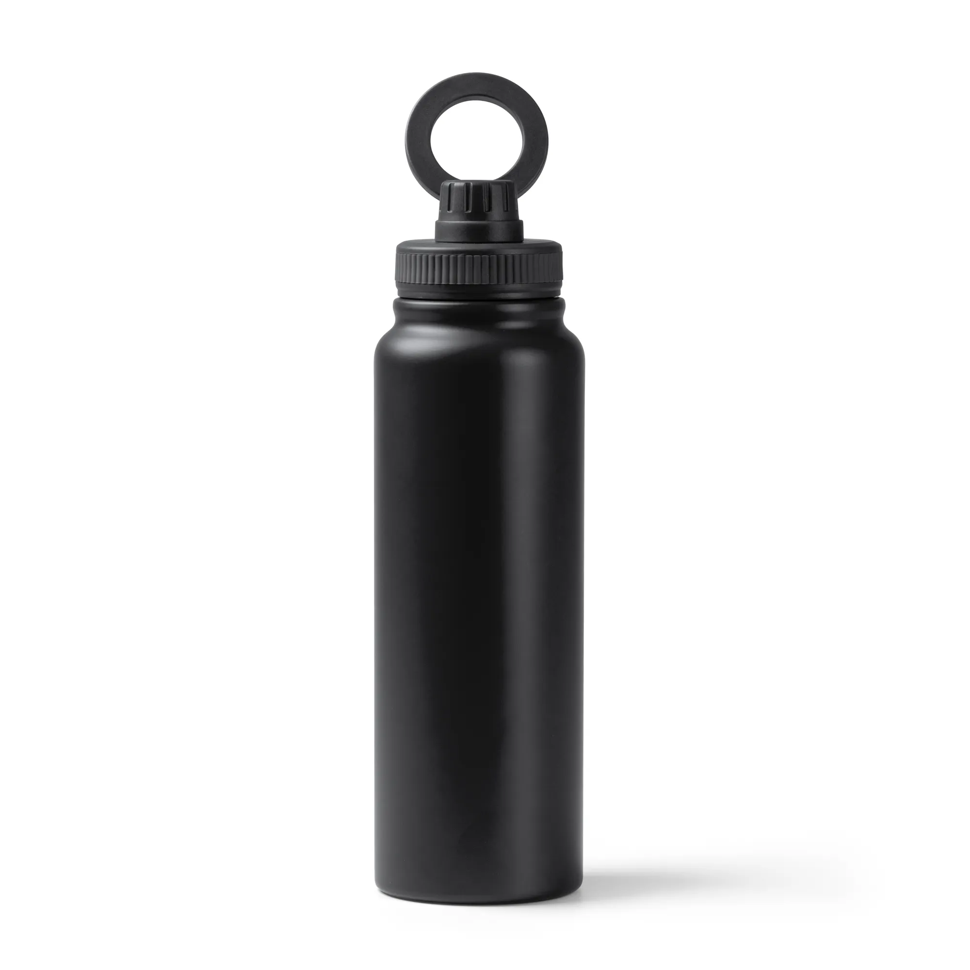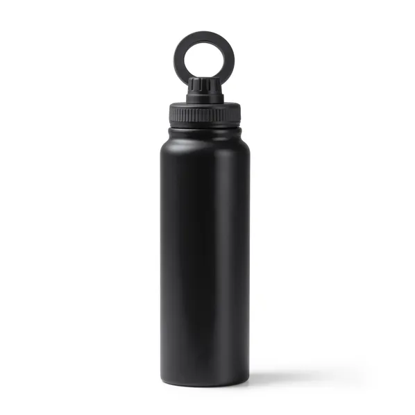 Черный термос из переработанной нержавеющей стали 304 с крышкой с магнитным кольцом для держателя мобильного телефона. Нескользящая резина на основании.