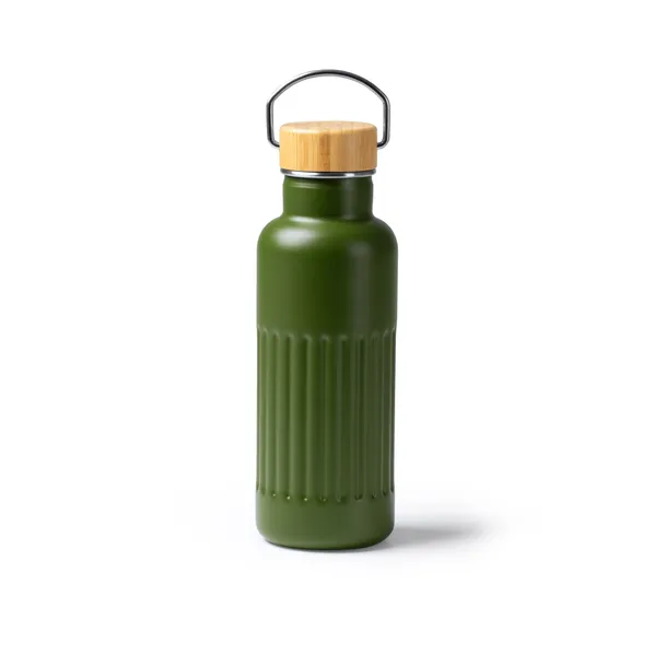 Экологичный зеленый термос из переработанной нержавеющей стали с двойными стенками и бамбуковой крышкой. Емкость: 500 мл.