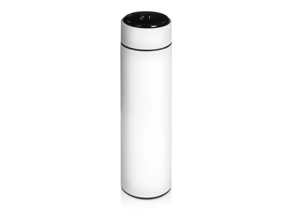 Вакуумный белый термос «Module X» не только сохраняет ваши напитки горячими, но и показывает, насколько они горячие! Уникальная особенность термоса — это сенсорный индикатор температуры, расположенный в крышке.