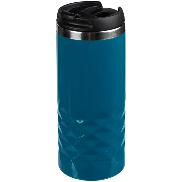 Большой темно-синий термостакан Molti Prism. Покрытие кружки Prism напоминает глянцевую эмаль, — и рельефная поверхность корпуса дополнительно подчеркивается яркими бликами. Емкость 350 мл.