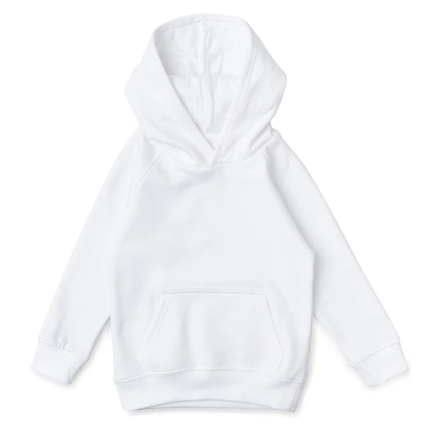 Детская толстовка белого цвета из органического хлопка с капюшоном, рукавами реглан и карманом-кенгуру. Края рукава и низ изделия выполнены резинкой 2х2. Укрепляющая тесьма по вороту. Внутренняя сторона с начесом.