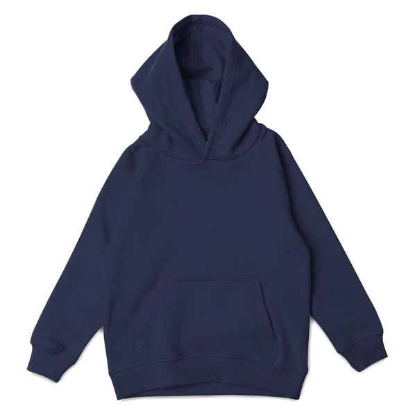 Детская толстовка темно-синего цвета из органического хлопка с капюшоном, рукавами реглан и карманом-кенгуру. Края рукава и низ изделия выполнены резинкой 2х2. Укрепляющая тесьма по вороту. Внутренняя сторона с начесом.