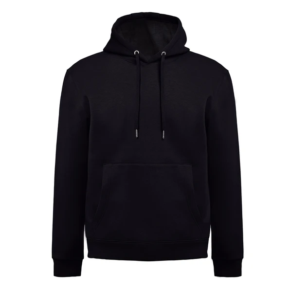 Удобная черная толстовка из легкого и плотного футера с начесом. Состав: 80% хлопок, выращенный в экологически устойчивых условиях, и 20% переработанный полиэстер.