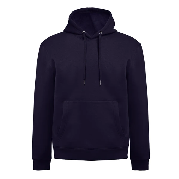 Удобная синяя толстовка из легкого и плотного футера с начесом. Состав: 80% хлопок, выращенный в экологически устойчивых условиях, и 20% переработанный полиэстер.