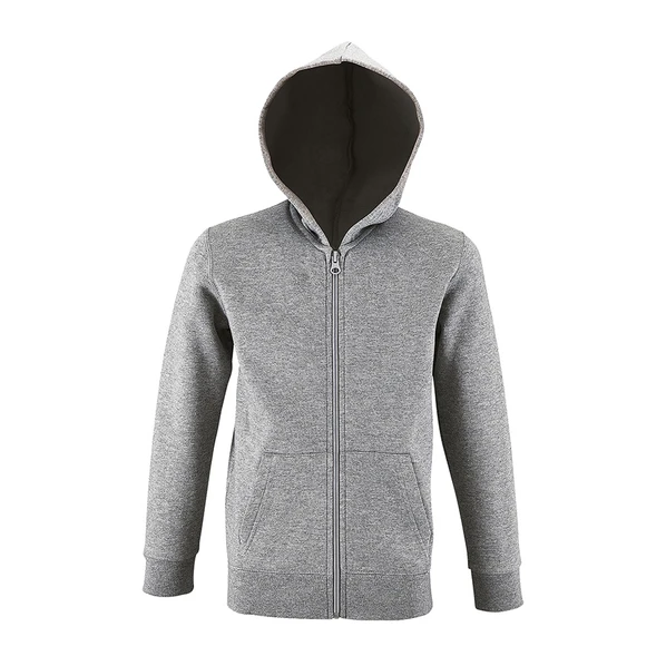 Детская серая толстовка с капюшоном на молнии Stone Kids без боковых швов, что даёт возможность делать качественную персонализацию на боковых частях. За счет смесового состава толстовка прослужит долго и не деформируется. Оптимальная плотность, начес с внутренней стороны.
