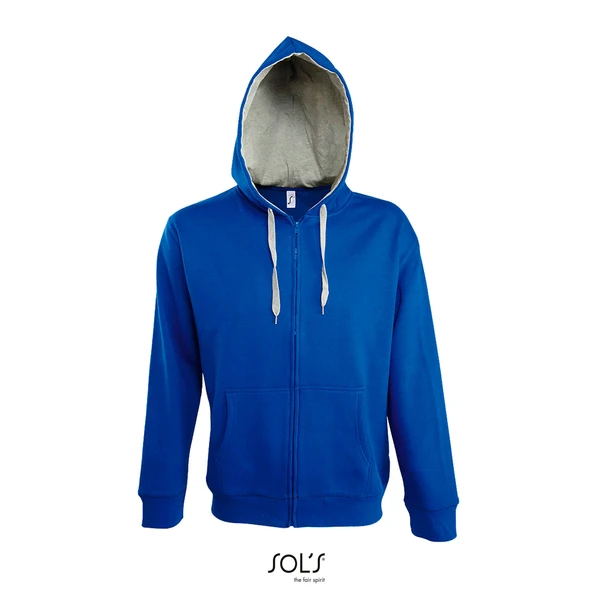 Стильная синяя толстовка Soul выполнена из 50% хлопка и 50% полиэстера. Внутренняя сторона из мольтона с начесом, 2 кармана кенгуру, низ изделия и манжеты связаны резинкой из эластана, внутренняя сторона капюшона из мольтона с начесом контрастных цветов, эластичный стягивающий шнур по низу изделия контрастных цветов.