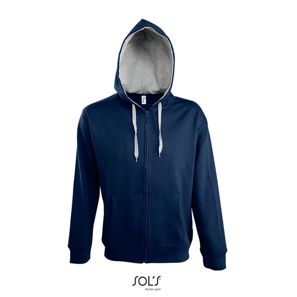 Стильная темно-синяя толстовка Soul выполнена из 50% хлопка и 50% полиэстера. Внутренняя сторона из мольтона с начесом, 2 кармана кенгуру, низ изделия и манжеты связаны резинкой из эластана, внутренняя сторона капюшона из мольтона с начесом контрастных цветов, эластичный стягивающий шнур по низу изделия контрастных цветов.