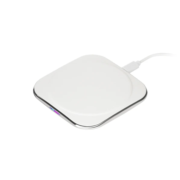 Беспроводное зарядное устройство в белом цвете быстро и без хлопот зарядит мобильное устройство или любой другой адаптированный гаджет.
