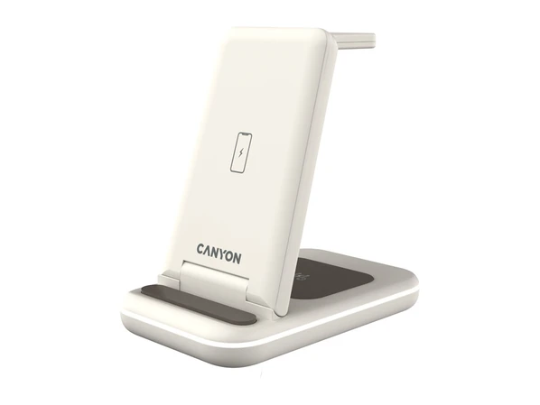 Беспроводное бежевое зарядное устройство Canyon WS-304. Зарядная станция избавит от беспорядка на столе или прикроватной тумбе. Заряжайте все ваши устройства одновременно — станция совместима с большинством смартфонов, поддерживающих беспроводную зарядку, включая iPhone, также она подходит для зарядки наушников с беспроводным стандартом зарядки Qi и Apple Watch.