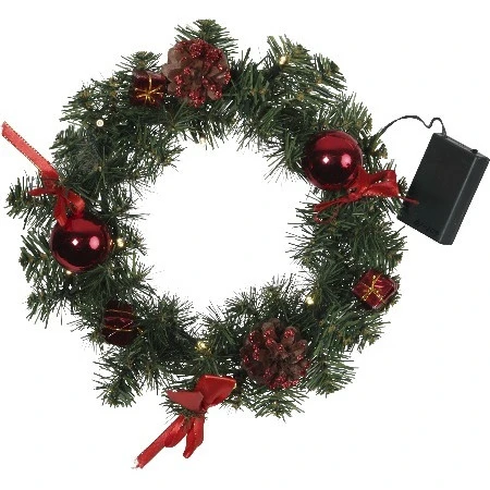 Венок еловый Decorage, 30 см, 10 LED ламп, зеленый / красный