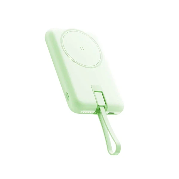 Внешний зеленый аккумулятор Movespeed L10 емкостью 10000 mAh. Компактный размер, стильный дизайн и качественные материалы. PowerBank поддерживает технологию MagSafe и примагничивается к девайсам либо к чехлам, обладающими этой технологией.
