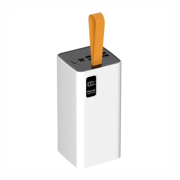 Внешний белый аккумулятор Pero PB09 50K PD емкостью 50000 mAh оснащен четырьмя USB-A портами и одним USB-C портом с выходным током 3А.
