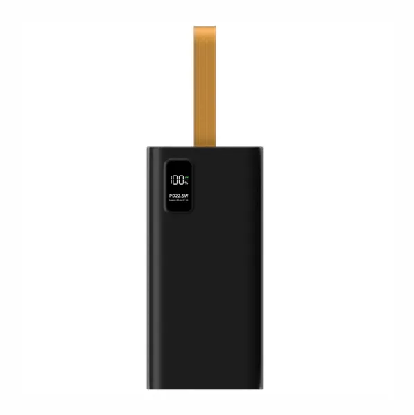 Внешний черный аккумулятор Pero PB09 50K PD емкостью 50000 mAh оснащен четырьмя USB-A портами и одним USB-C портом с выходным током 3А.