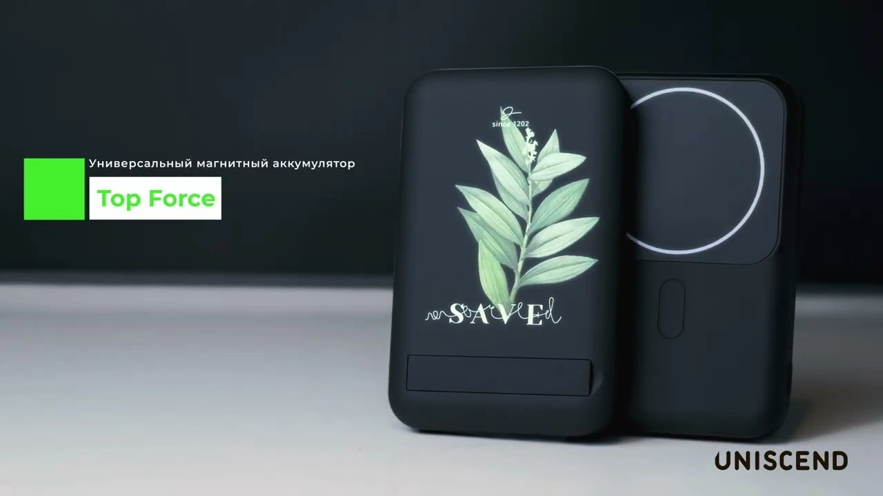 Основное преимущество магнитного черного аккумулятора Uniscend Top Force — быстрая зарядка QC 3.0 самого аккумулятора и быстрая (минимум вдвое быстрее обычной) беспроводная зарядка гаджета, а также возможность зафиксировать Top Force на задней крышке телефона.