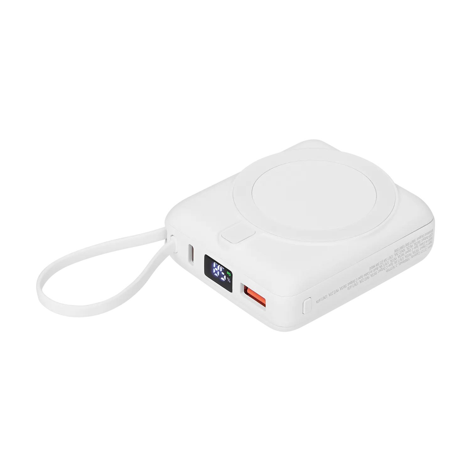 Белый внешний аккумулятор Ritter PD с усиленным магнитом, обеспечивает надежную фиксацию и быструю зарядку совместимых устройств. С поддержкой беспроводной зарядки MagSafe мощностью 15W и проводной быстрой зарядкой Power Delivery на 22.5W, Ritter PD становится идеальным спутником для ваших гаджетов.