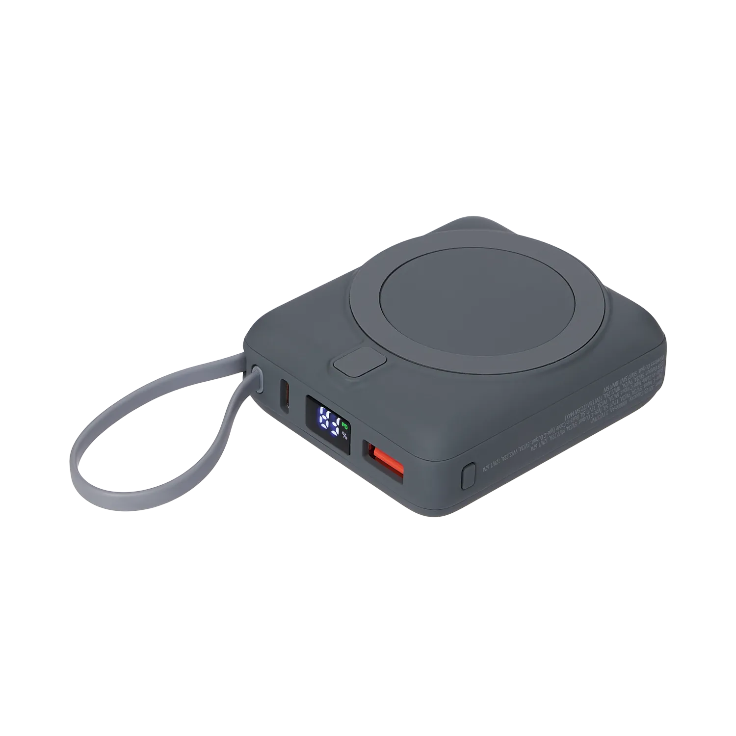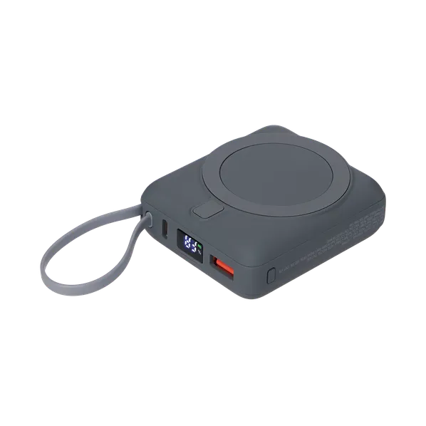 Серый внешний аккумулятор Ritter PD с усиленным магнитом, обеспечивает надежную фиксацию и быструю зарядку совместимых устройств. С поддержкой беспроводной зарядки MagSafe мощностью 15W и проводной быстрой зарядкой Power Delivery на 22.5W, Ritter PD становится идеальным спутником для ваших гаджетов.