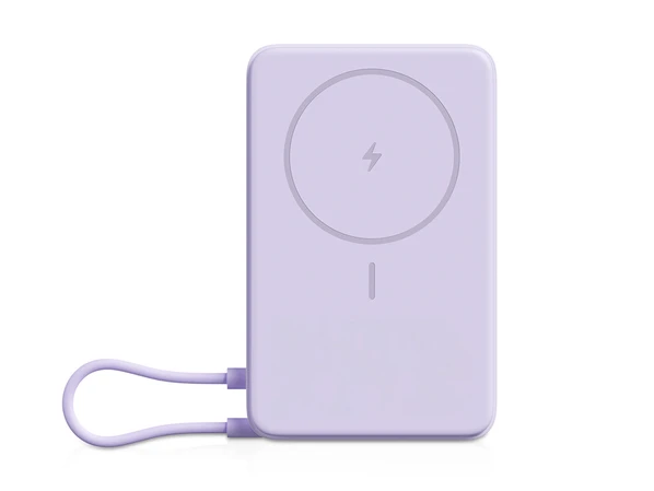 Xiaomi Magnetic Power Bank 10000 with Built-in Stand — это компактный фиолетовый внешний аккумулятор с магнитным креплением, беспроводной зарядкой и встроенной подставкой, созданный для удобного использования смартфона во время зарядки.