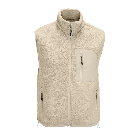 Бежевый жилет унисекс из фактурной искусственной шерпы с гладкой отделкой из таслана.