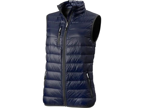 Женская пуховая жилетка Fairview. Стандартный покрой. Ткань не пропускает пух. Карманы для рук и нагрудный на молнии. Внутренний противоветровой клапан и защита подбородка. Эластичная обшивка внизу и на проймах. Ткань дышащая, ветронепроницаемая и влагоотталкивающая. Отражающий лого сзади. Ремешки на собачку (второй комплект в цвете антрацит).