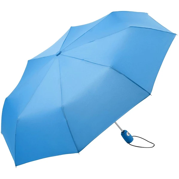Компактный зонт-автомат голубого цвета AOC снабжен системой WindProof, благодаря которой способен выдержать сильные порывы ветра.