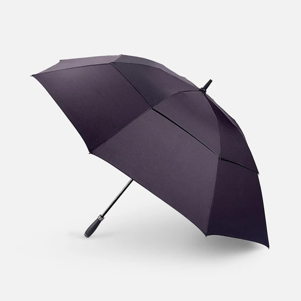 Мужской черный зонт-гольфер Executive подойдет как для прогулок по городу, так и для деловых бизнес-встреч. Под большим двойным куполом будет комфортно даже вдвоем. Особый крой предотвратит  выворачивание зонта во время сильных порывов ветра.